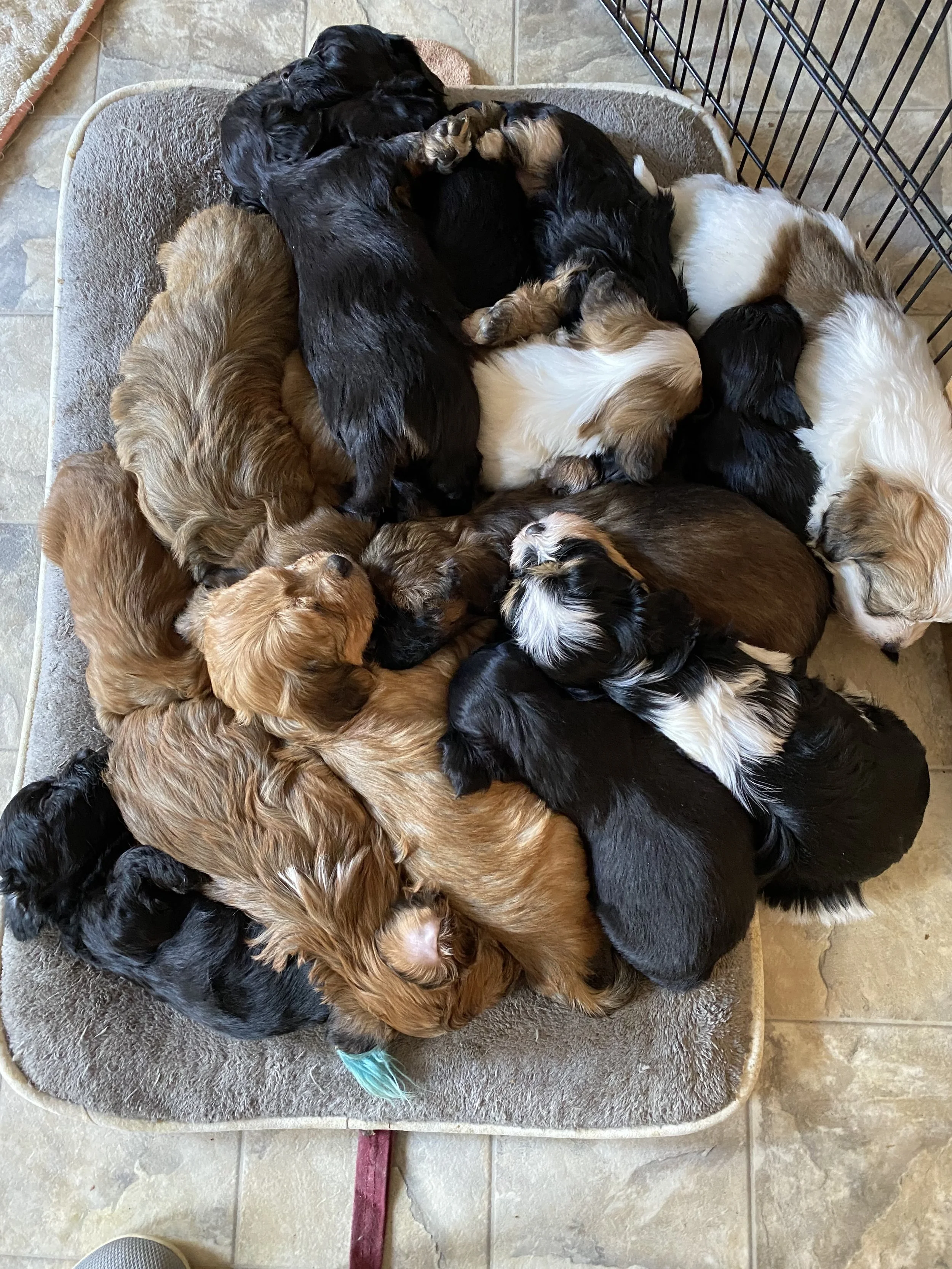 This year we have puppies that range from 6 lbs to 20 lbs. Wavey, straight, and curly. Colors range from black, silver, cream, champagne, tan, blue, chocolate, fawn, gold & white & everything in between. Our specialty is chocolates.